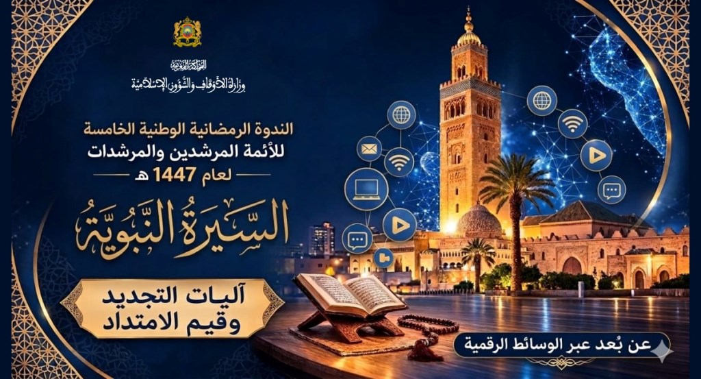 أحمد المهداوي تستعد وزارة الأوقاف والشؤون الإسلامية لتنظيم الندوة الرمضانية الخامسة للأئمة المرشدين والمرشدات، تحت شعار “السيرة النبوية والذكاء الاصطناعي”، وذلك خلال الفترة الممتدة من 19 إلى 22 رمضان 1447هـ الموافق لـ 9 إلى 12 مارس 2026، ابتداءً من الساعة التاسعة والنصف ليلاً. ووفق البرنامج المعلن، تتضمن الندوة سلسلة من الجلسات العلمية والمحاضرات التي […]