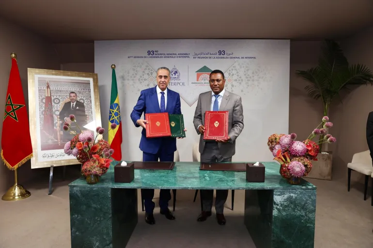 تحرير: دين بريس وقعت إثيوبيا والمغرب، اليوم الثلاثاء، اتفاقية أمنية رفيعة المستوى تهدف إلى تعزيز التنسيق بين الأجهزة الأمنية والاستخبارية في البلدين، وذلك على هامش اجتماعات الدورة الـ93 للجمعية العامة للإنتربول المنعقدة في مراكش. وجرى التوقيع بين مفوض الشرطة الفدرالية الإثيوبية الجنرال ديميلاش جبر ميكائيل ومدير الأمن الوطني المغربي عبد اللطيف الحموشي، في خطوة تعكس […]